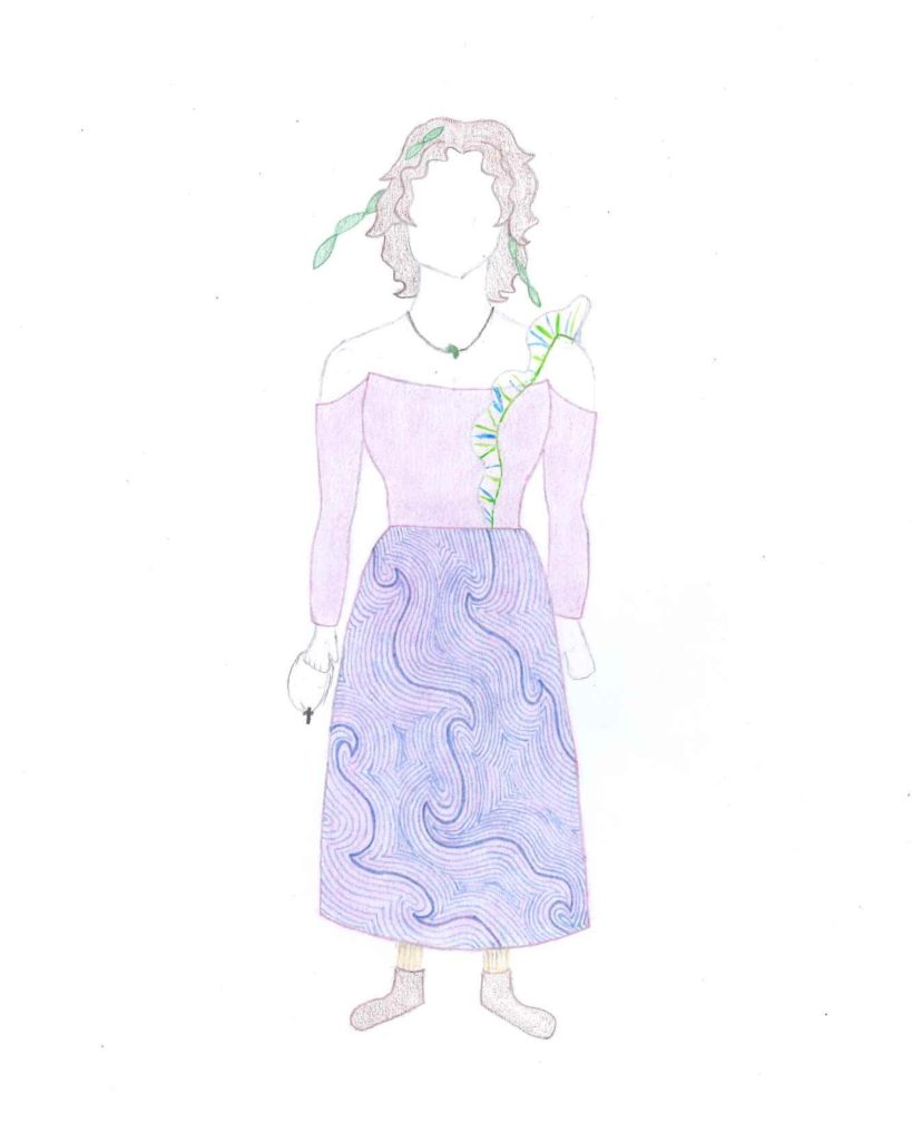 The focus for these designs was how the sea had such a strong presence in these characters’ lives, to the point where it dictates their future. Two of the characters succumb to the ocean, being consumed by it in different ways.